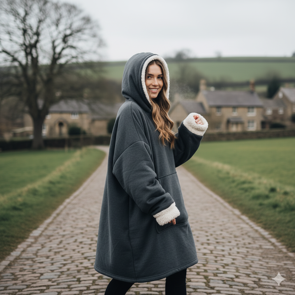 Experience unparalleled comfort with the Original wearable blanket in classic Grey. Built for all-day cosiness, it pairs a plush sherpa lining with a breathable fleece exterior to keep you warm without overheating. The relaxed, oversized cut comes in Small/Medium and Large for a better fit, while the extra-large kangaroo pocket and roomy hood add everyday practicality. Easy to care for and gift-ready.